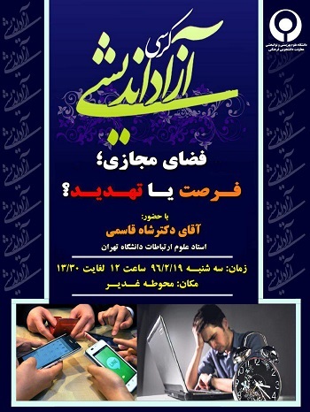 معاونت فرهنگی دانشجویی با همکاری اداره تعالی فرهنگی دانشگاه علوم بهزیستی و توانبخشی ، از ساعت 12 الی 13/30 روز سه شنبه (19 اردیبهشت ماه ) ، کرسی آزاد اندیشی با موضوع " فرصت ها و تهدیدهای فضای مجازی" در محوطه مقابل ساختمان غدیر ، برگزار می کند.