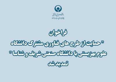 اخبار > فراخوان " حمایت از طرح های فناوری مشترک دانشگاه علوم بهزیستی با دانشگاه صنعتی شریف و شناسا " تمدید شد