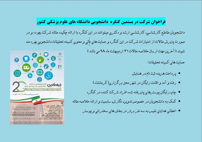 فراخوان شرکت در بيستمين كنگره ساليانه دانشجويانی دانشگاه های علوم پزشكي كشور در شهر كرمانشاه