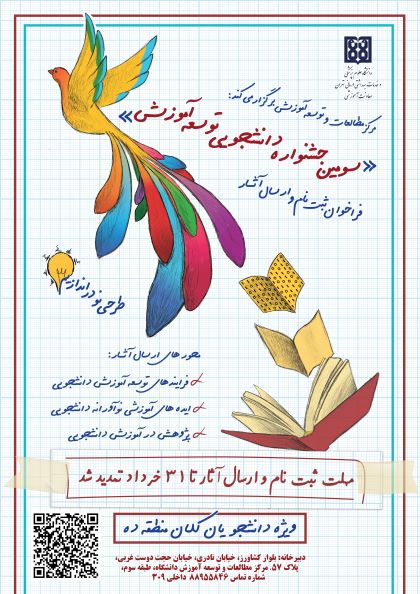 زمان برگزاری سومین جشنواره دانشجویی توسعه آموزش دانشجویان کلان منطقه 10، به روز هشتم مهرماه تغییر کرد