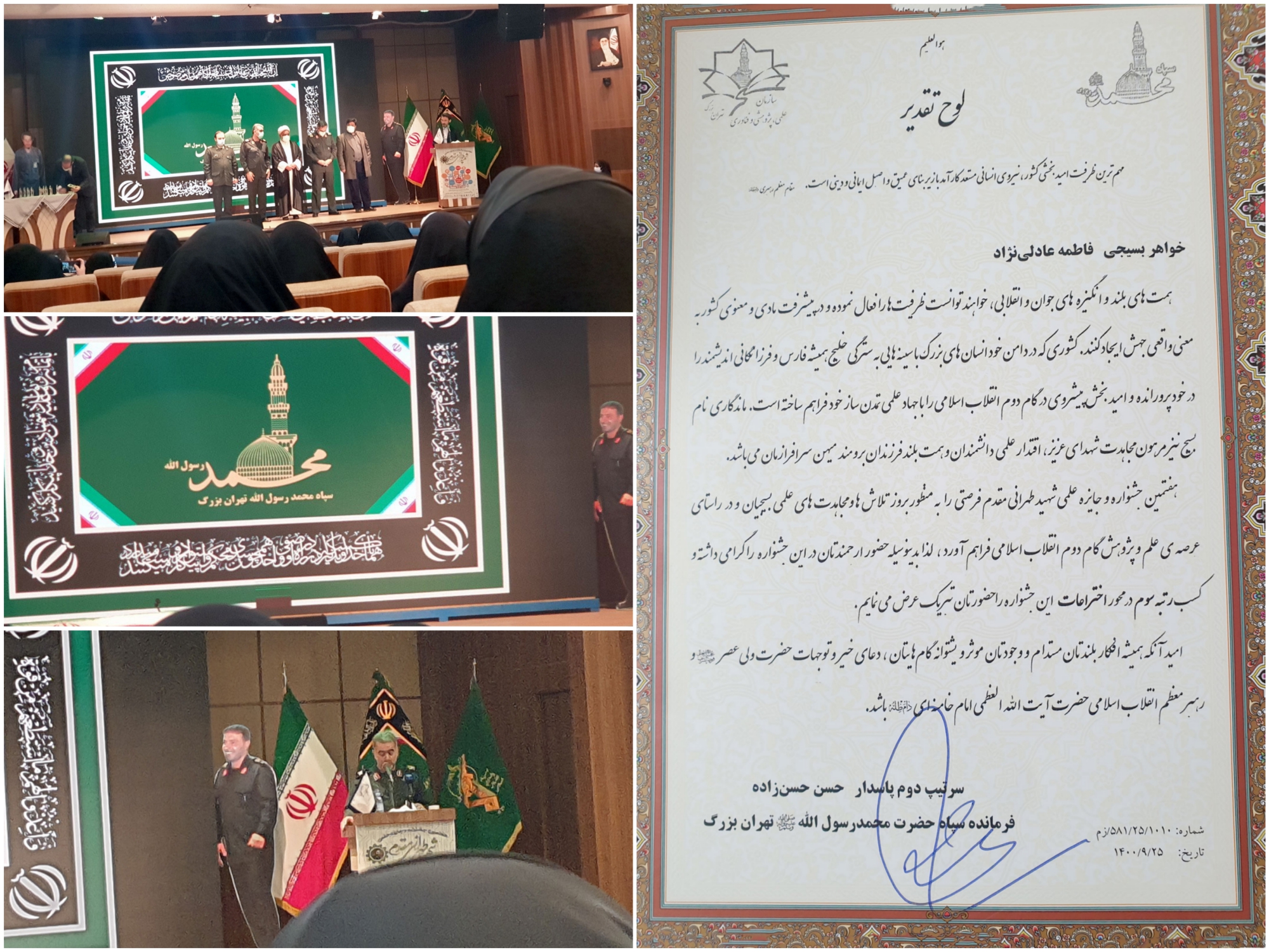 اخبار > عضو شورای بسیج جامعه پزشکی دانشگاه علوم توانبخشی و سلامت اجتماعی، رتبه سوم جشنواره شهید طهرانی مقدم را کسب کرد
