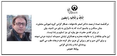 اخبار > درگذشت استاد ارجمند «اصغر دادخواه» را تسلیت می گوییم