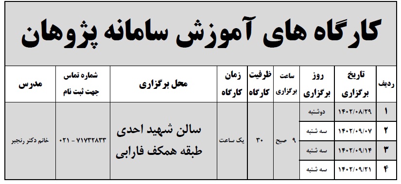 قابل توجه دانشجویان تحصبلات تکمیلی در خصوص برگزاری کارگاه پژوهان