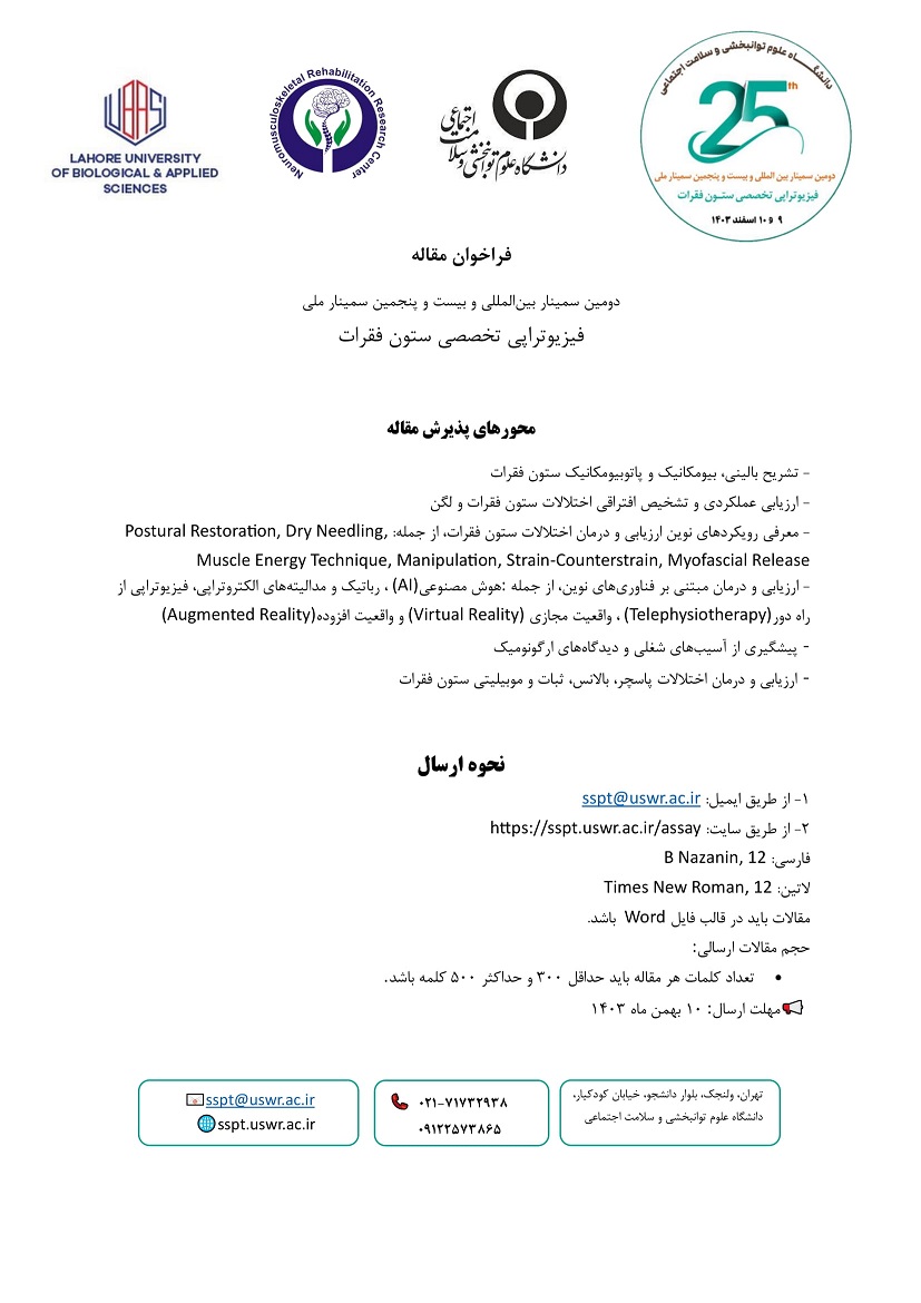 دومين سمينار بين المللي و بيست و پنجمين سمينار ملي فيزيوتراپي تخصصي ستون فقرات