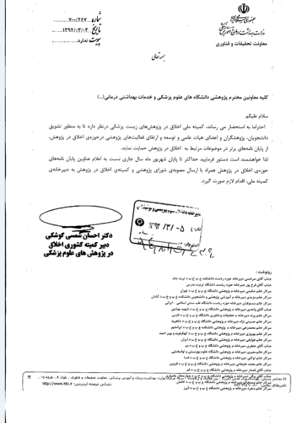 معاونت تحقیقات و فن آوری اطلاعات :حمایت از پایان نامه های برتر در موضوعات مرتبط با اخلاق در پژوهش