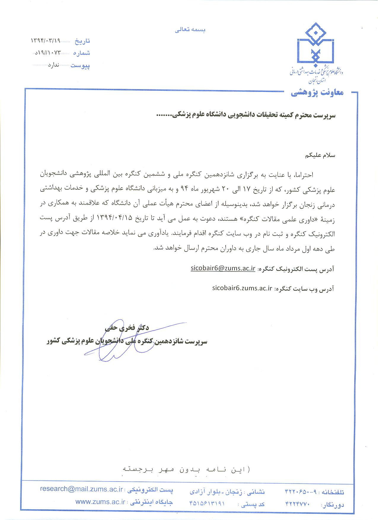 کمیته تحقیقات دانشجویی:دعوت به همکاری اعضا محترم هیئت علمی جهت داوری مقالات کنگره