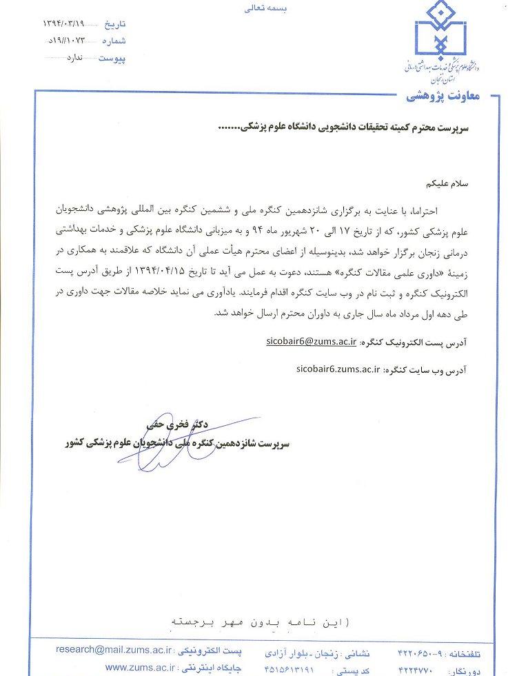 اخبار > دعوت به همکاری اعضا محترم هیئت علمی جهت داوری مقالات کنگره |