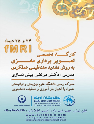 دوره تخصصی تصویربرداری مغزی به روش تشدید مغناطیسی عملکردی (fMRI) ،از سری دوره های علوم اعصاب شناختی ، با تدریس استاد دکتر مرتضی پیش نمازی ، در روزهای پنج شنبه و جمعه مورخ 24 و 25 دیماه جاری در دانشگاه علوم بهزیستی و توانبخشی برگزار می شود.