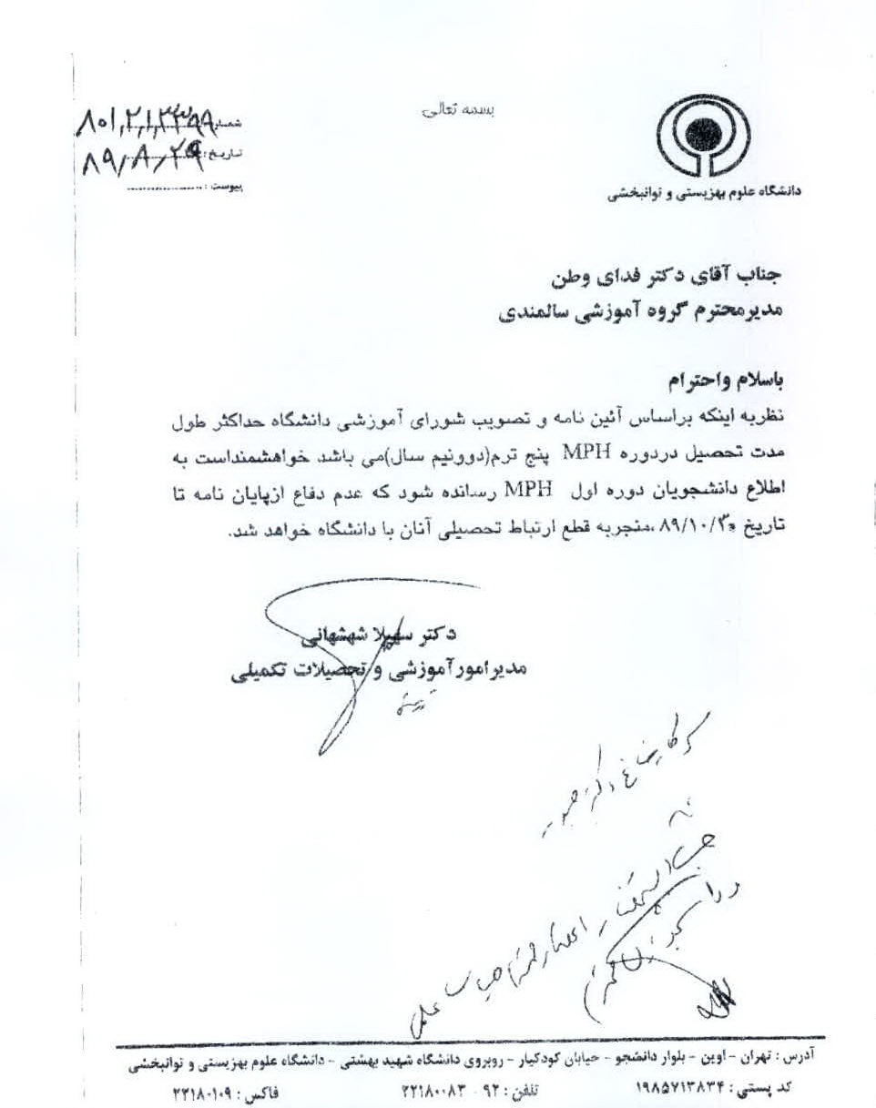 اخبار > اطلاعيه دانشجوي MPh سالمندي