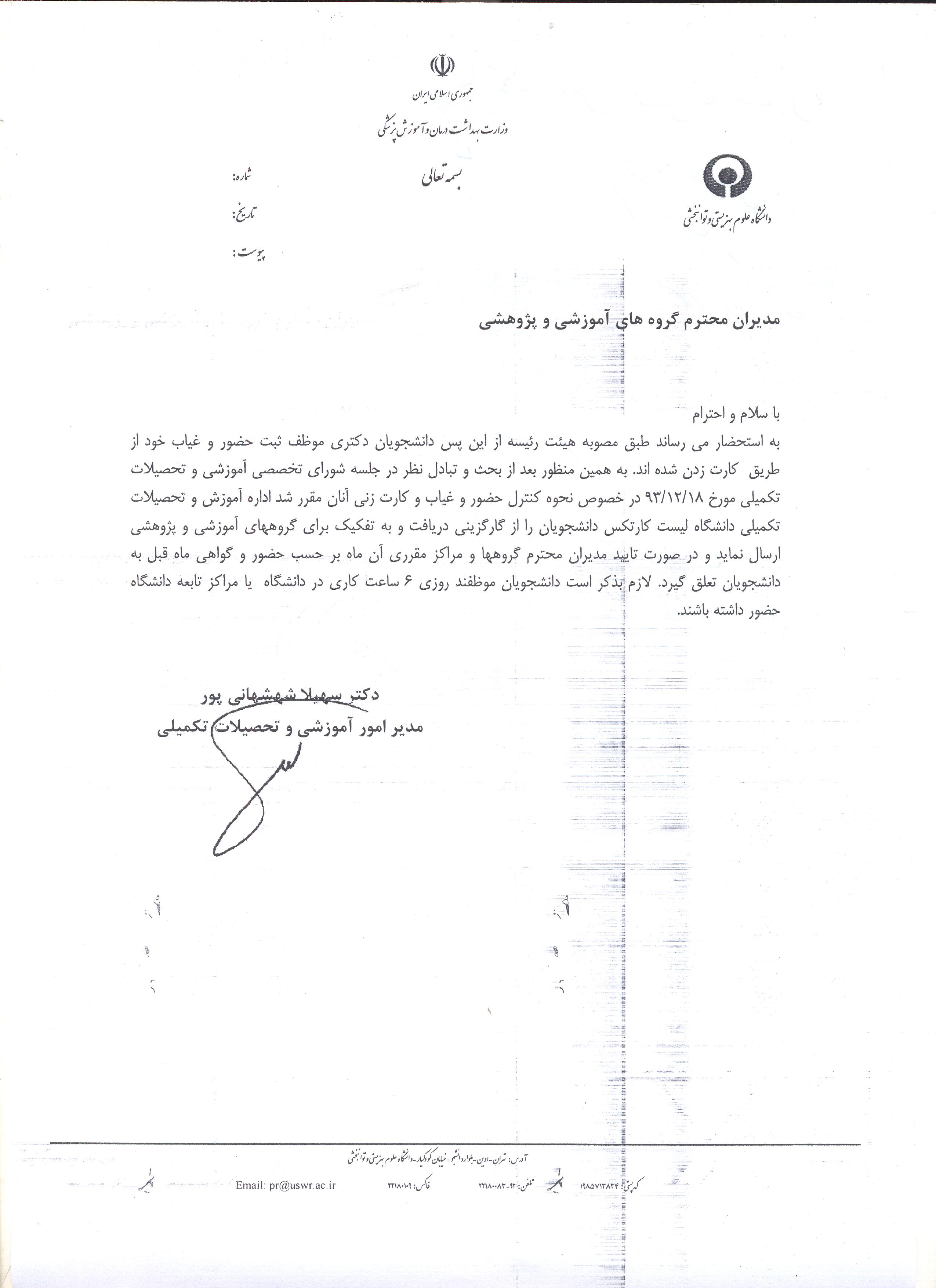 اطلاعیه حضور و غیاب دانشجویان دکترا